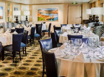 Hlavné reštaurácie flotily umožňujú vybrané stravovanie a varietu medzinárodných druhov kuchyne vo veľkolepom prostredí. Menej formálnou alternatívou na večer sú Lido, kde nájdete na objednávku čerstvo vyrobené sushi, pokrmy z woku, cestoviny, pizzu, kari, pečené mäso, bohatý výber zeleniny, plnené pečené zemiaky a zákusky. AquaSpa Café podáva ľahké a zdravé pokrmy počnúc raňajkami až do večera. Neskoro večer čašníci v bielych rukavičkách podávajú v salónoch lode malé pochúťky, ako mini beef wellingtons alebo chrumkavú tempuru.