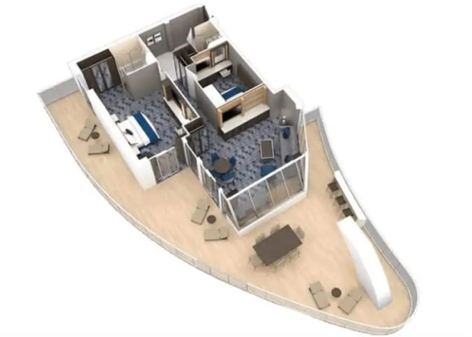 OP - Owner's Panoramic Suite 100 m² + balkón 15 m² s vírivkou. 2-podlažný apartmán. 17. paluba. Max 4 osoby. Výhody Royal Suite Star Class. 18 964 € 9 482 € za osobu