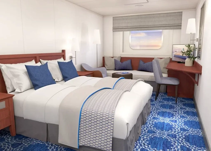 | XBO - Kajuta s oknom Cosmos / obmedzený výhľad 14 m². Neotvárateľné okno s obmedzeným výhľadom. 6,7. paluba. Max 4 osoby. | 1 178 € 589 € za osobu |
