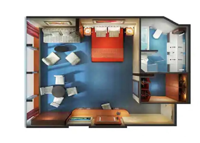 | S4 - Deluxe Family Suite - 2 spálne 54 m² / balkón 5 m². 11. paluba - vpredu, stred. Max 6 osôb. Výhody Suite. | 5 312 € 2 656 € za osobu |