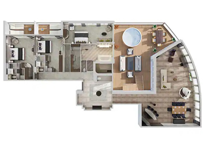 | H1 - The Haven Garden Villa - 3 spálne 395 m² / balkón 155 m². 14. paluba - stred. Max 8 osôb. Výhody The Haven. | 24 198 € 12 099 € za osobu | ||