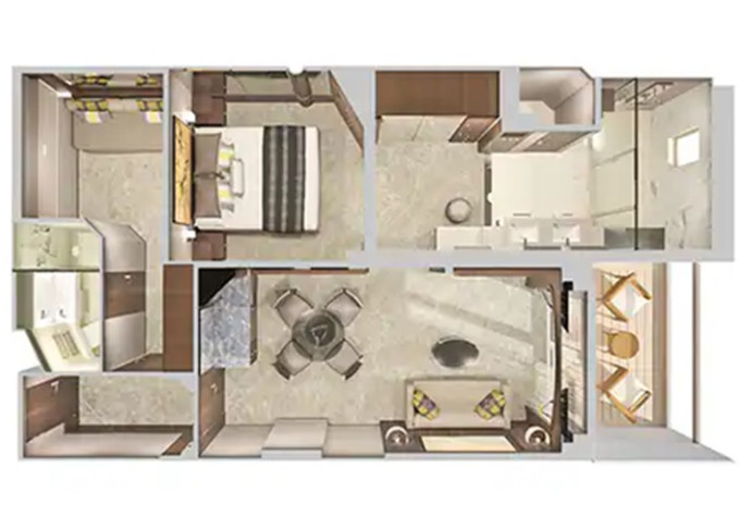 | M1 - Club Suite Aft-facing od 25 m² / balkón 5-8 m². 11. paluba - vzadu. Max 4 osoby. Výhody Club. | 5 038 € 2 519 € za osobu | ||