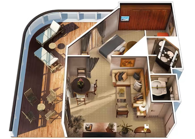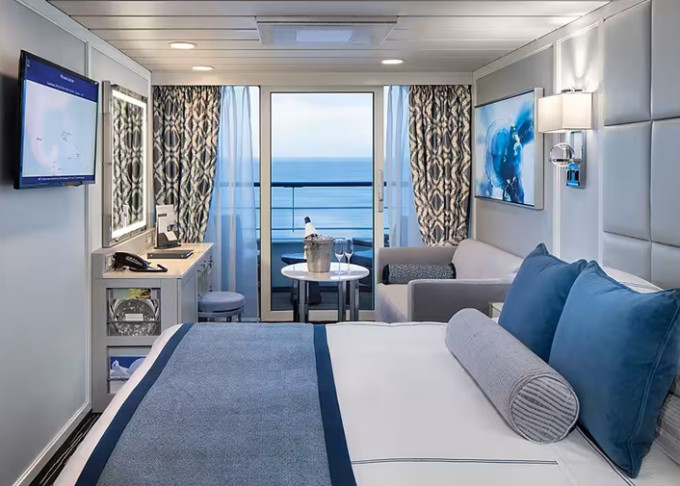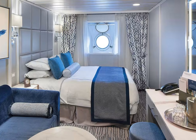 Všetky kajuty a apartmány sú plne vybavené všetkým pohodlím. Mäkké textílie a elegantný nábytok v pokojných tónoch zeme a oceánu. Každá kajuta je vybavená zásuvkami USB. Minibar je naplnený nealko nápojmi (bez príplatku).