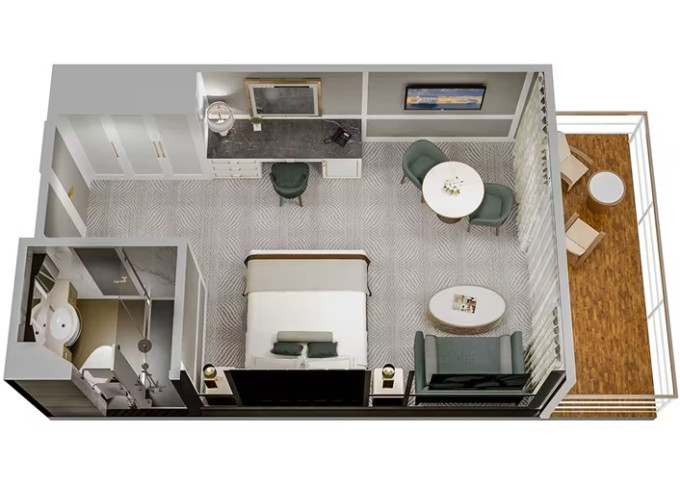| PH1 - Penthouse Suite 24 m² + balkón 5 m². 8. paluba stred. Max 2-3 osoby. Spálňa s obývacou časťou, kúpeľňa so sprchovacím kútom. Výhody Penthouse Suite. | 19 738 € 9 869 € za osobu | ||
