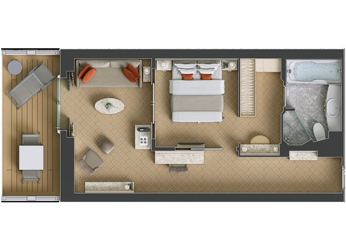 | SV - Superior Veranda Suite 30 m² + balkón 6 m². 7,8,9. paluba. Max 3 osoby. | 24 000 € 24 000 € za osobu | ||